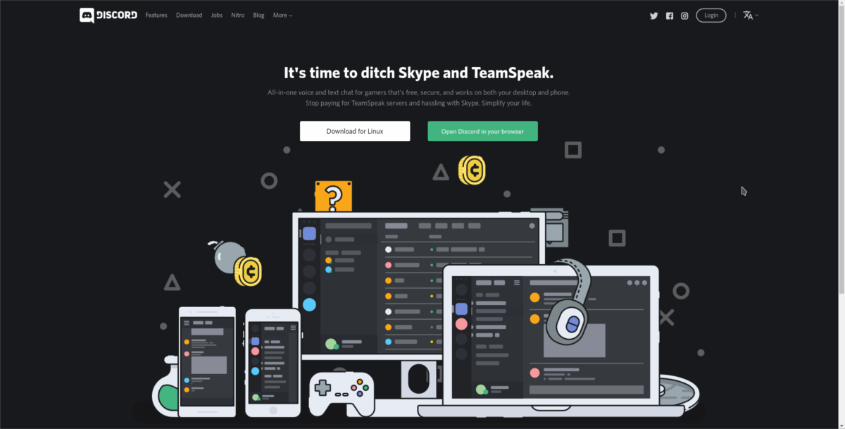 Start by heading over to the Discord website. The site should automatically detect that you’re running Linux and suggest the correct package right in the main section of the page.