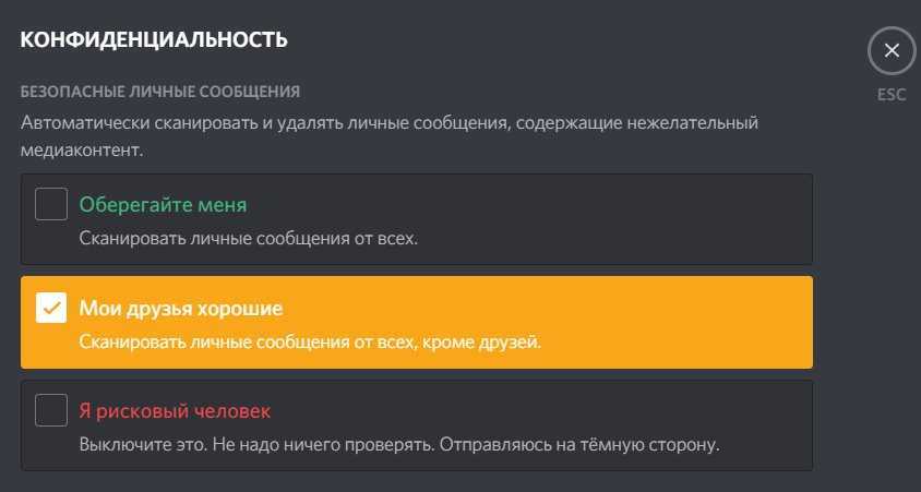 - Перейдите в раздел Конфиденциальность. Здесь установите настройки по сканированию личных сообщений, выставьте людей, которые смогут добавлять в друзья.