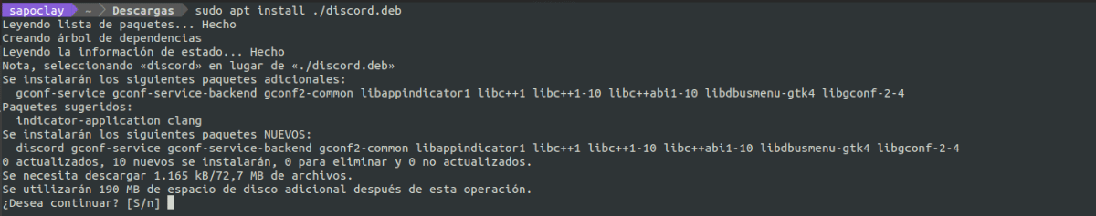 Once the download is complete you can run this command to install the Discord Linux app using apt.