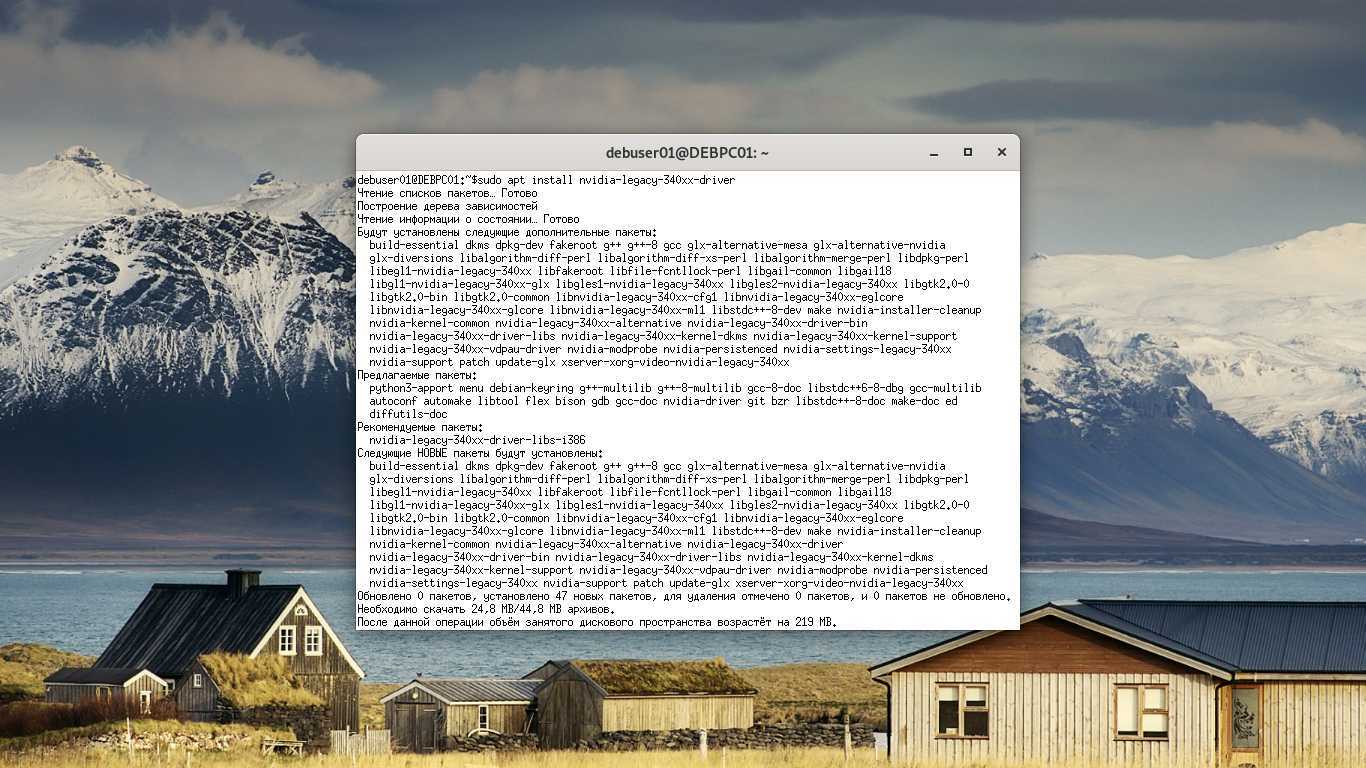 Для установки драйвера Nvidia Debian 10 версии 340 для очень старых видеокарт выполните команду: