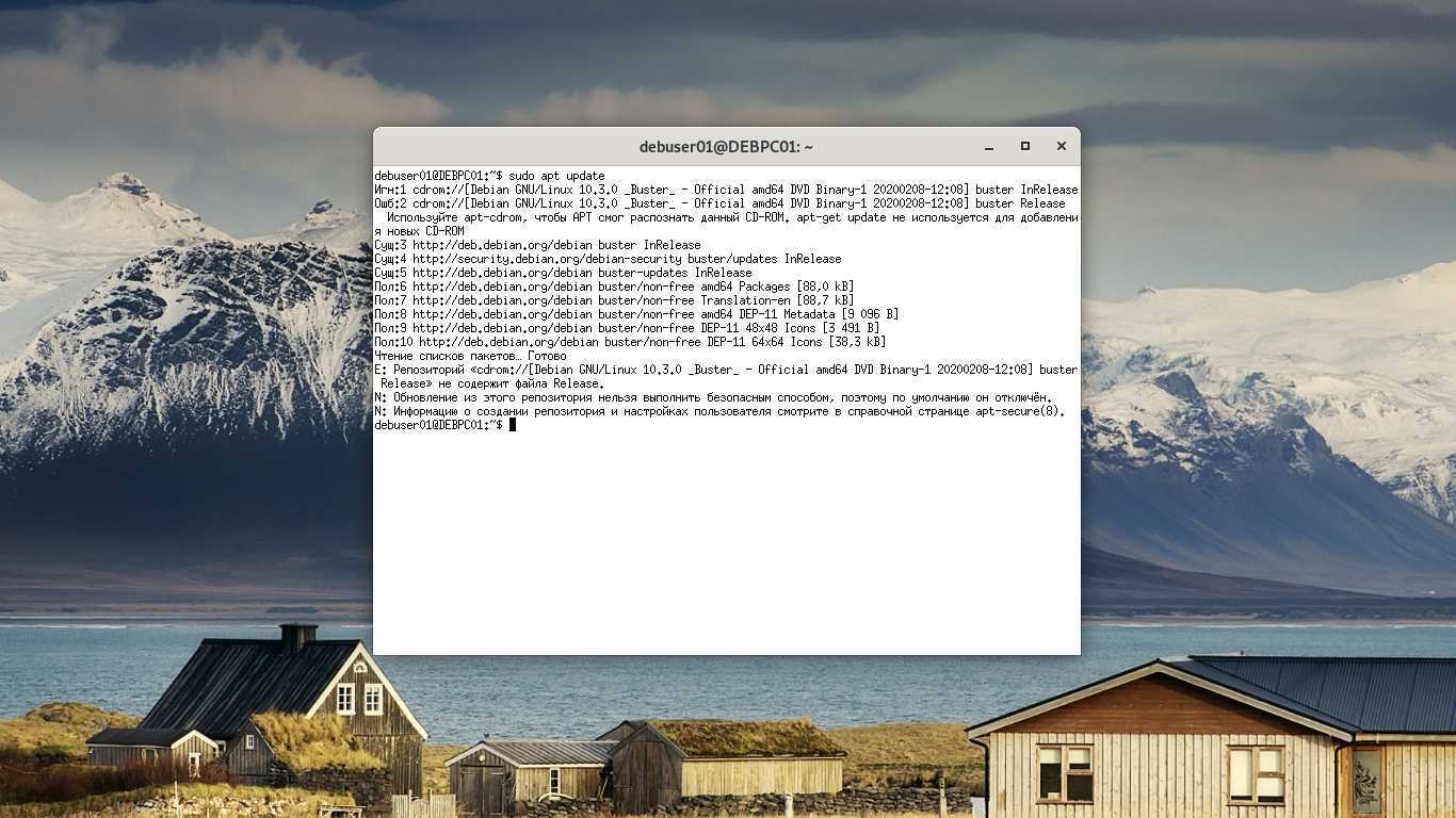 В операционной системе Debian мы будем устанавливать драйвер Nvidia из репозиториев самого Debian. Но, перед этим давайте так же обновим микрокод для процессора, после чего установим драйвера. И так, переходим в терминал и обновляем микрокод командой: