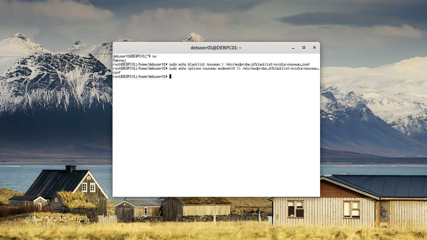 Сейчас пора занести в черный список драйвер nouveau, чтобы избежать возможных конфликтов: