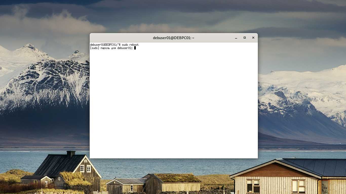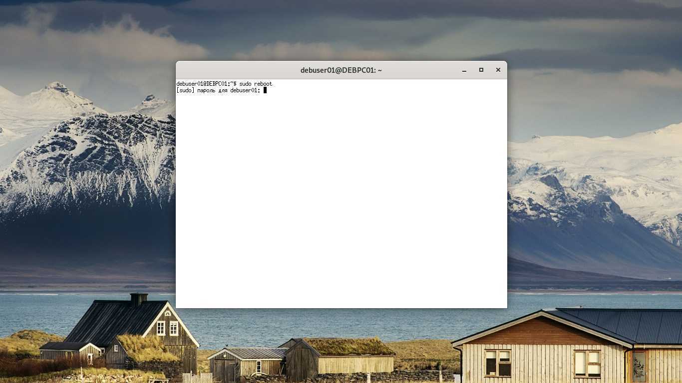 После чего перезагружаем систему, можно прямо из терминала, введя команду: