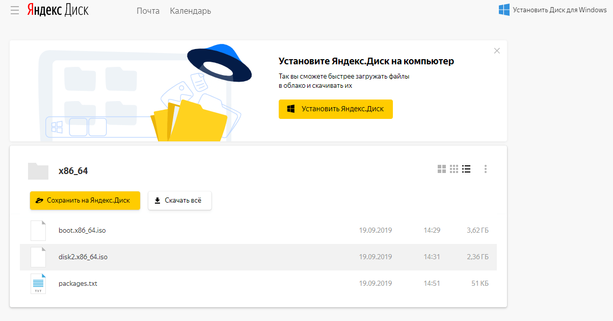 Далее попадаем на Яндекс.Диск, где уже скачиваем образа x86_64.iso (Рис.2)