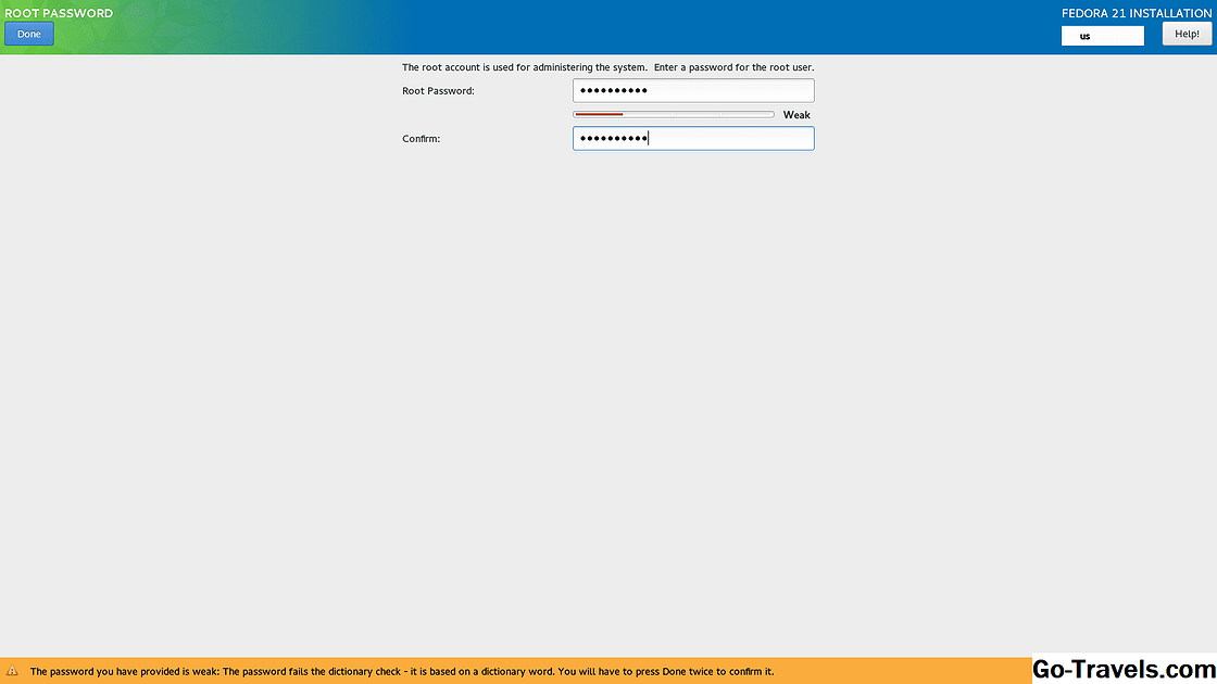Если вы установили слабый пароль, появится оранжевое окно с сообщением об этом. Вы должны нажать Готово снова игнорировать предупреждение.
