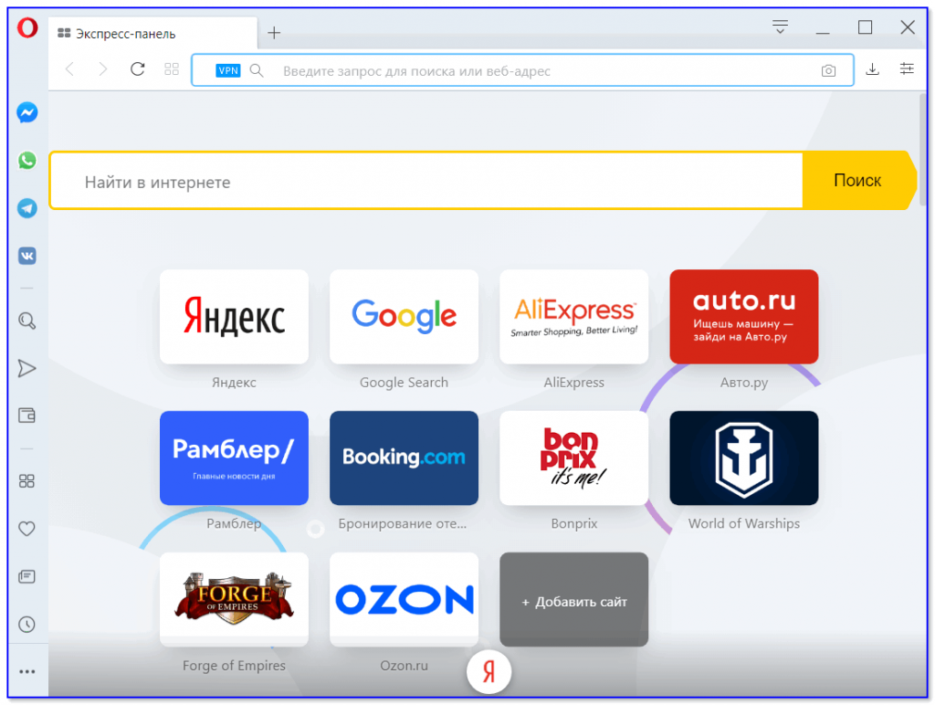 Opera отличается от вышеприведенных браузеров наличием целого ряда встроенных инструментов (на скорость работы не влияют). Многие из них крайне полезны (например, как тот же VPN), и сильно выручают в трудную минуту…
