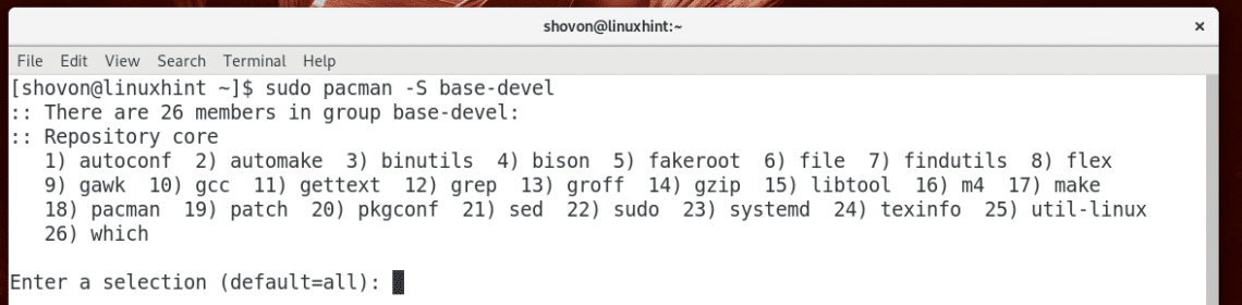 $ sudo pacman -S base-devel