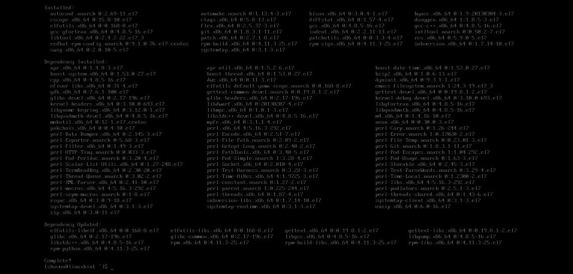 Now install Development Tools group packages with the following command: