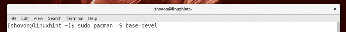 Now install base-devel package with the following command: