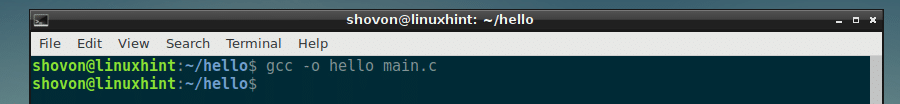 The source file main.c should be compiled and hello executable file should be created as you can see in the screenshot below.
