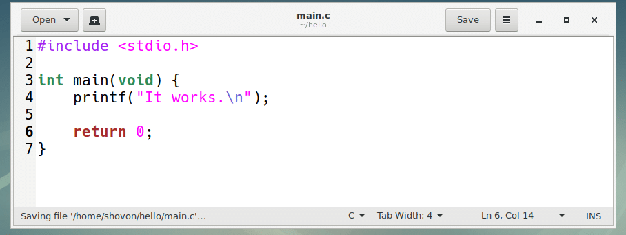 Now let’s write a very simple C program, which we will compile in the next section of this article below using GCC C compiler.