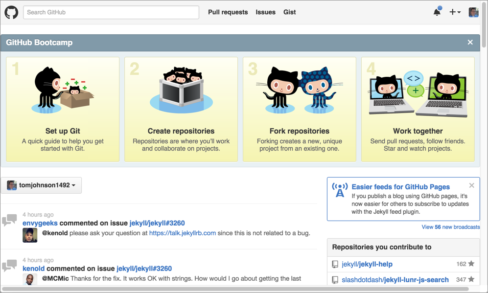 Note: Git и GitHub — это две разные вещи. GitHub предоставляет онлайн-репозитории и инструменты для Git. GitHub — это платформа для управления проектами Git с приятным графическим интерфейсом для выполнения некоторых задач Git, таких например, как запросы на извлечение.