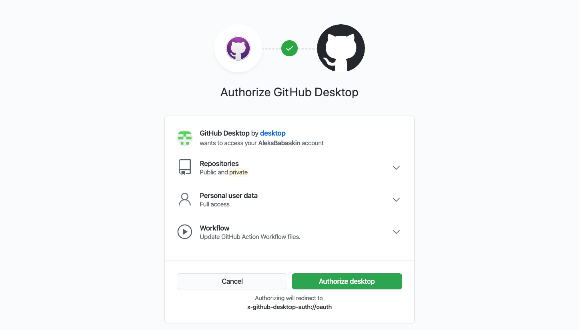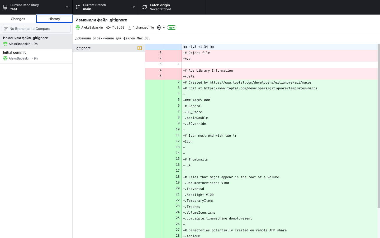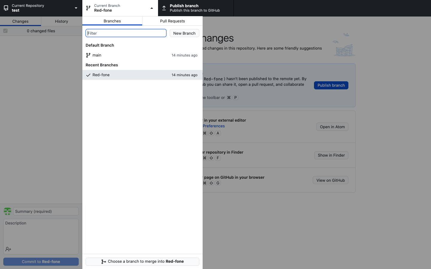 Предположим, наша идея с красным фоном оказалась удачной и код нужно залить в основную ветку. Чтобы это сделать, переходим сайт GitHub, нажимаем кнопку Сompare & pull request и подтверждаем изменения кнопкой Merge pull request. Последний шаг — переходим в GitHub Desktop, кликаем Fetch origin и синхронизируемся с удалённым репозиторием. Теперь код из дополнительной ветки попал в основную, а изменения есть на ПК и в облаке.