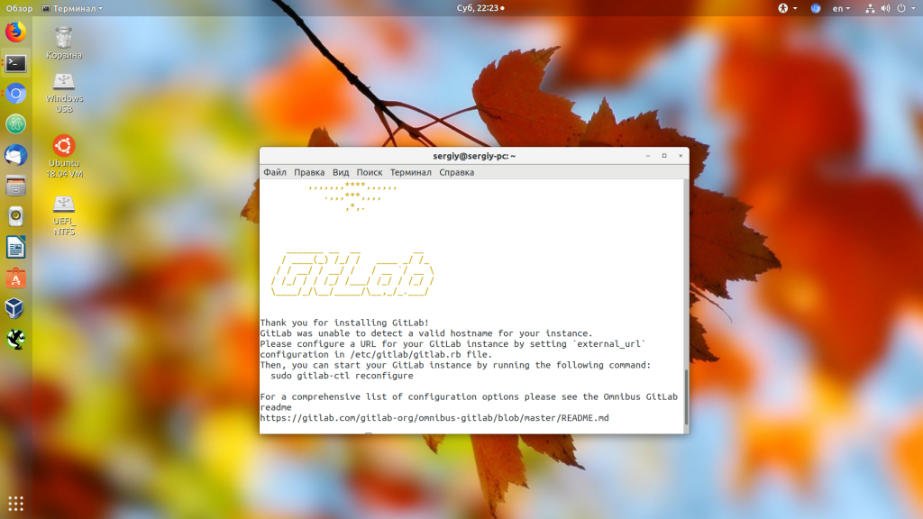 Когда установка GitLab Ubuntu 18.04 будет завершена, вы увидите такое сообщение: