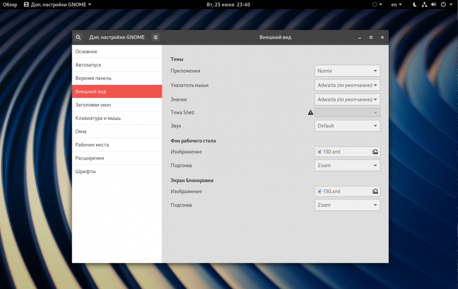 Десктоп и приложения по умолчанию Fedora 30 Workstation