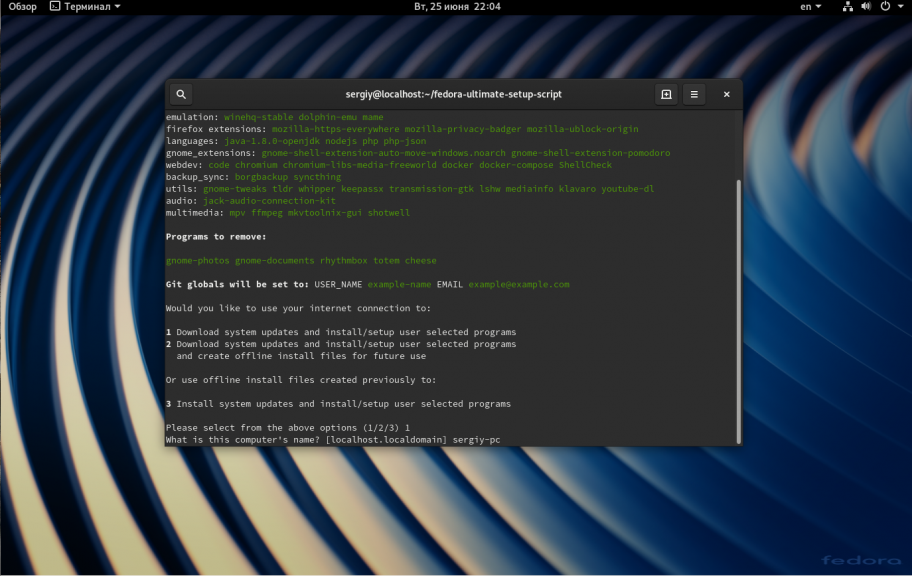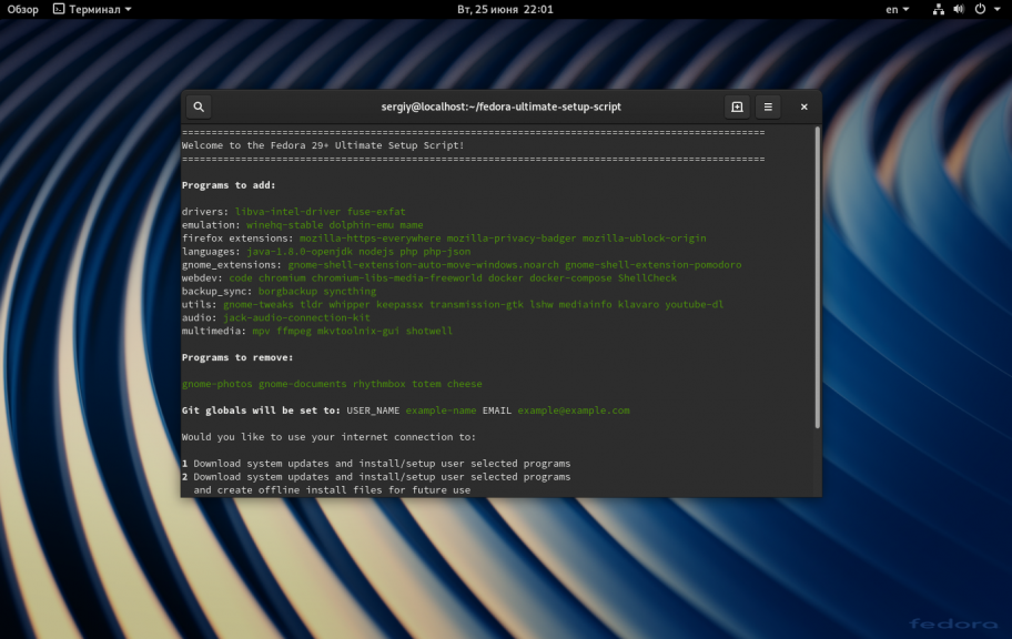 Дальше попробуем автоматизировать большую часть действий, которые приходится выполнять при настройке системы. Вот основные возможности, которые предоставляет нам этот скрипт. Сначала он установит необходимые программы: