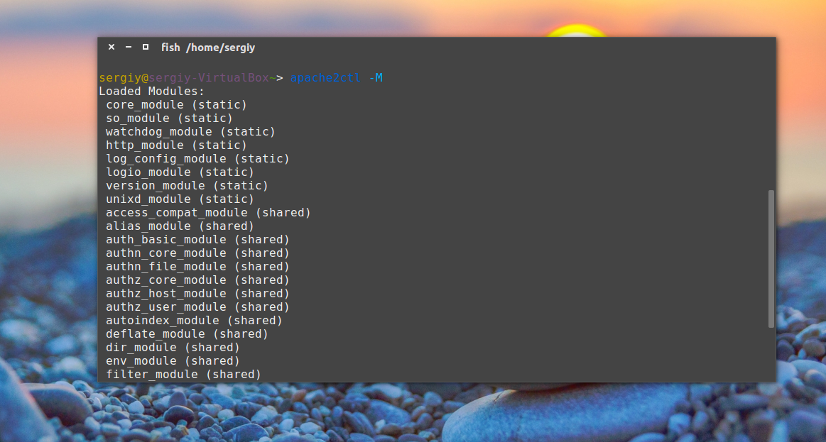 Но вам необязательно анализировать содержимое этих папок. Настройка Apache 2.4 с помощью добавления модулей выполняется с помощью специальных команд. Посмотреть все запущенные модули можно командой: