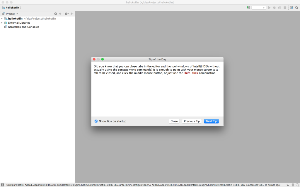 По завершении вы попадете в окно Tip of the Day, или Совет дня, в котором каждый раз при открытии приложения показываются полезные советы по IntelliJ IDEA.