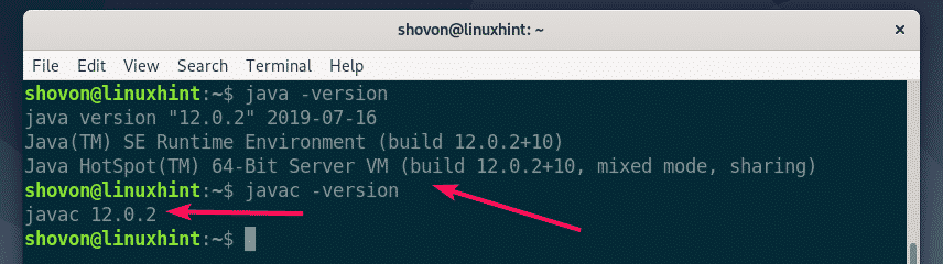 As you can see Oracle JDK 12.0.2 is installed and it’s working correctly.