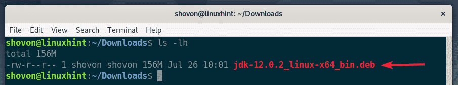 You should find the file (jdk-12.0.2_linux-x64_bin.deb) that you just downloaded.