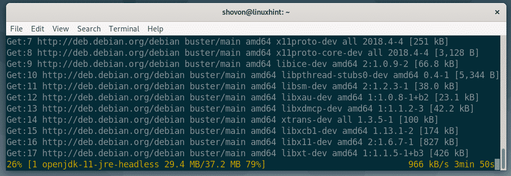 The APT package manager will download and install all the required packages. It will take a while to complete.