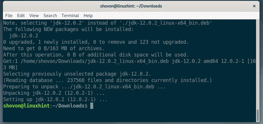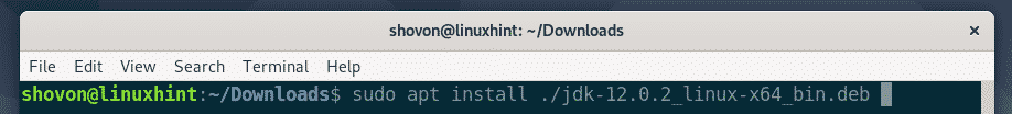 $ sudo apt install .jdk-12.0.2_linux-x64_bin.deb