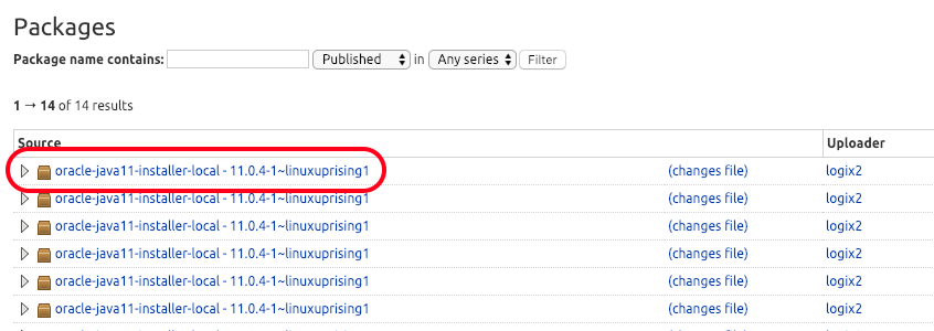 We need to make sure we’re downloading the correct version of Java, because it needs to match what the installer is expecting. We can check what version the installer needs by visiting the package listing of the installer’s software repository.
