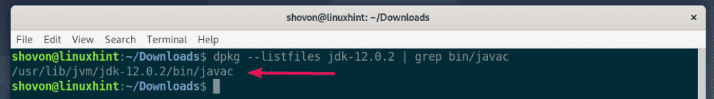 Now, we have to find the path where the javac binary is installed. The DEB package file (jdk-12.0.2_linux-x64_bin.deb) name started with jdk-12.0.2. So, this is the package name.
