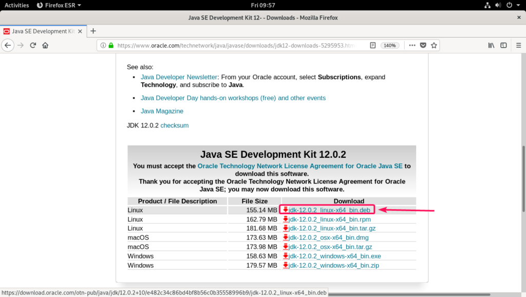 Now, click on the JDK deb download link as marked in the screenshot below.