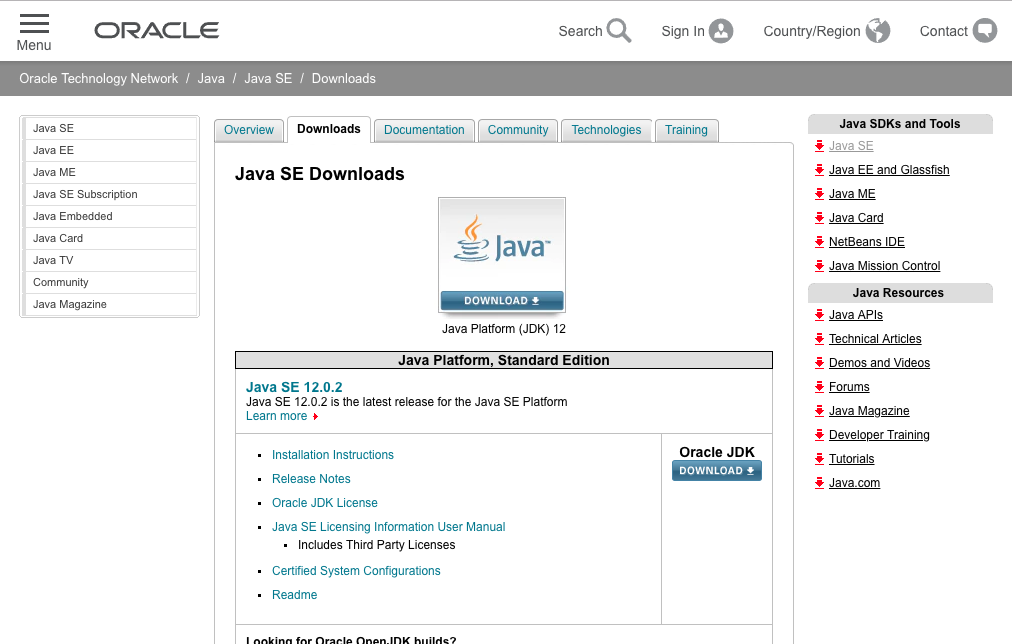 Afterwards, navigate to Oracle’s Java SE Downloads page: