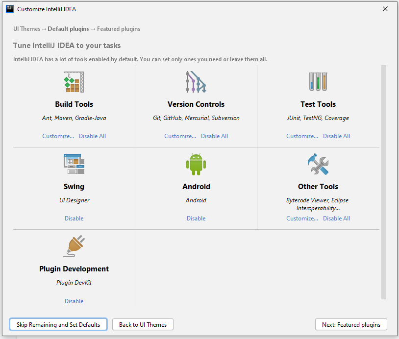 Жмём Next: Default plugins и переходим к выбору устанавливаемых плагинов: