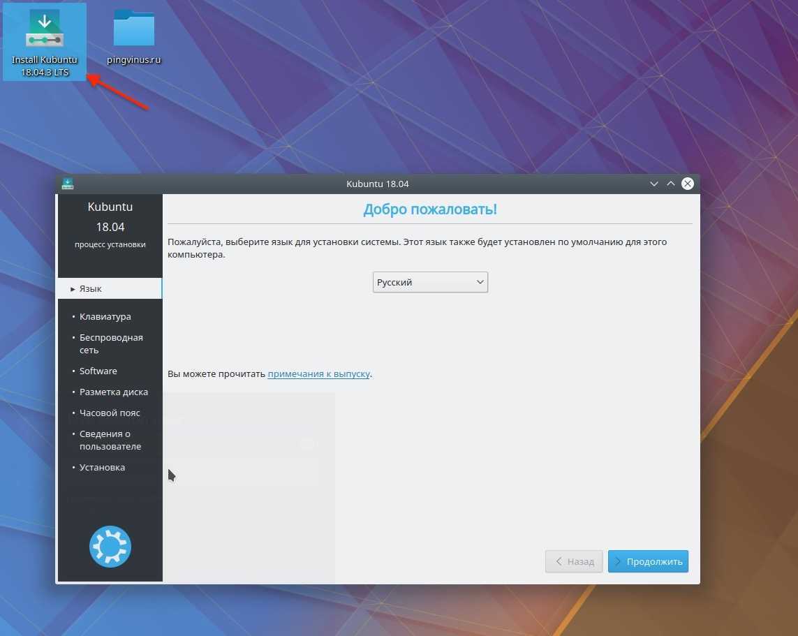 Загрузившись в Live-режиме дважды щелкните на значок Install Kubuntu, расположенный на рабочем столе, чтобы запустить программу установки.