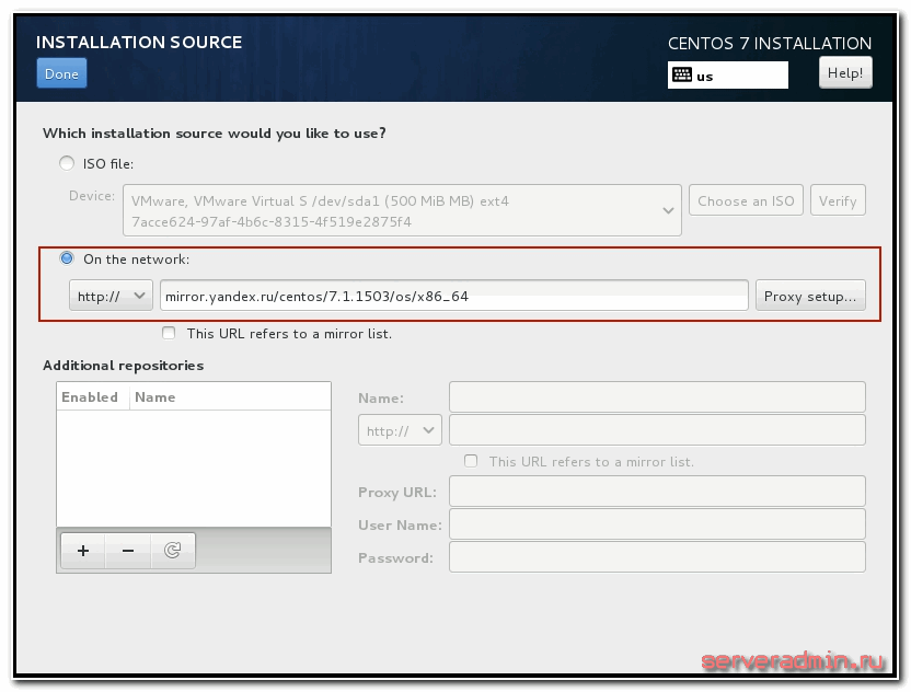 В качестве источника для установки я буду использовать упомянутое ранее . CentOS netinstall url — https://mirror.yandex.ru/centos/7/os/x86_64/