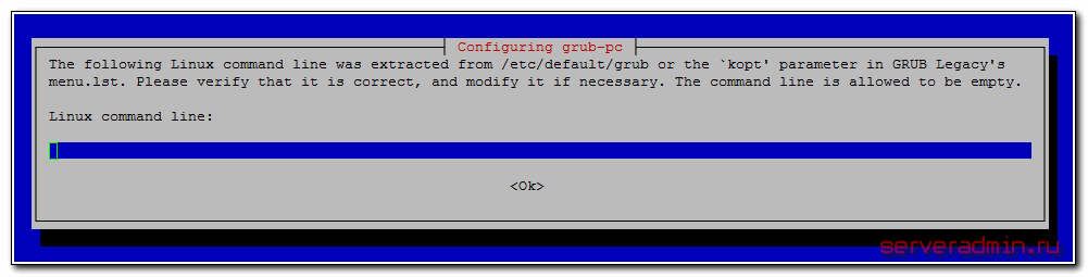 # dpkg-reconfigure grub-pc