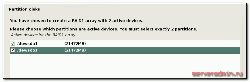 Далее выбираем 2 наших пустых раздела на каждом из дисков.
