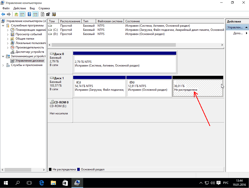 После этого появится новый распределенный раздел, обозначенный черным цветом.