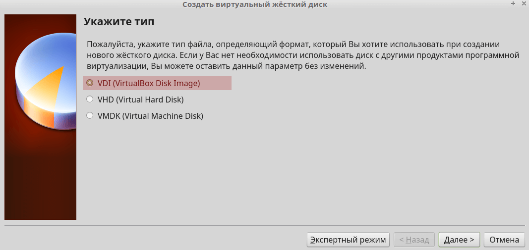 Если создаваемый виртуальный жесткий диск будет использоваться только в VirtualBox, оставьте «VDI: VirtualBox Disk Image». Этот вариант будет предложен программой по умолчанию.