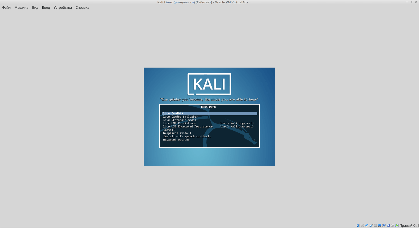 Виртуальная машина для установки Kali Linux располагается в перечне в правой части главного окна VirtualBox.