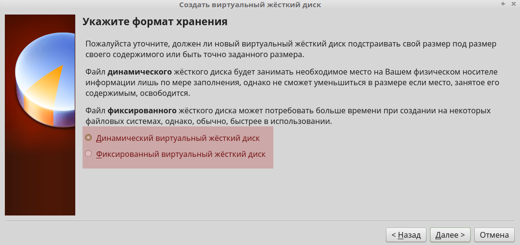 В первом случае размер виртуального накопителя станет подстраиваться под фактический объем содержимого. Я рассматриваю создание виртуальной машины с динамическим жестким диском.