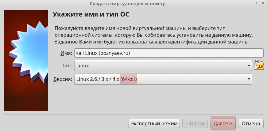 - В пункте 2 вы выставили «Создать новый виртуальный диск». Сейчас потребуется указать его размер. Тип форматирования и остальные параметры зависят от выбранного семейства ОС.