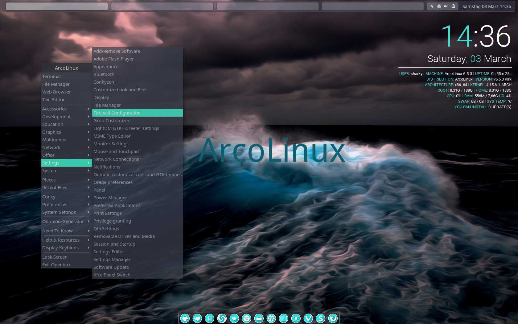 ArcoLinuxD отбрасывает все назад и требует, чтобы вы установили выбранную среду рабочего стола из терминала вместе с любыми необходимыми вам приложениями. Для новых пользователей отсутствие графического установщика может быть неприятным. Это то, что они называют «learning ISO» («диск, с которым вы научитесь»).