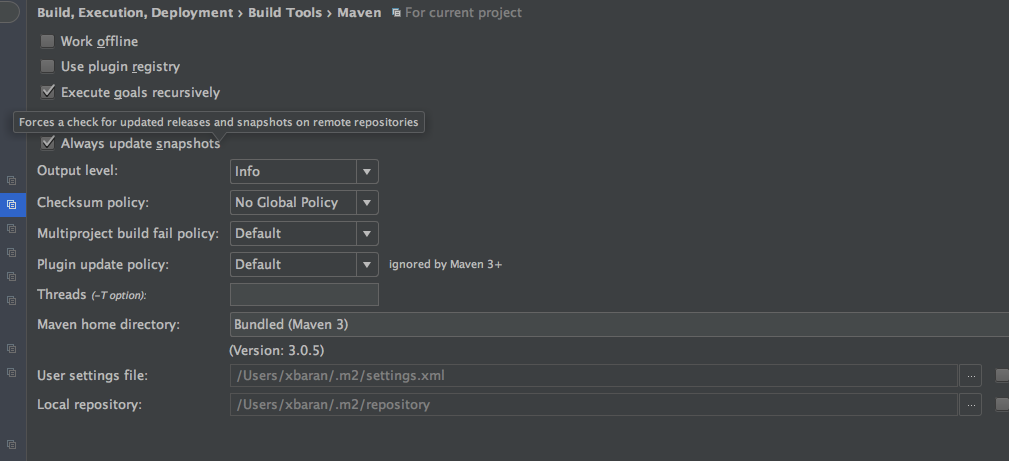Также дважды проверьте, что вы используете один и тот же каталог .m2 с вашей системой maven и intellij maven. Вы можете увидеть это в файле пользовательских настроек и сравнить его с командной строкой maven. Просто запустите и проверьте раздел настроек.