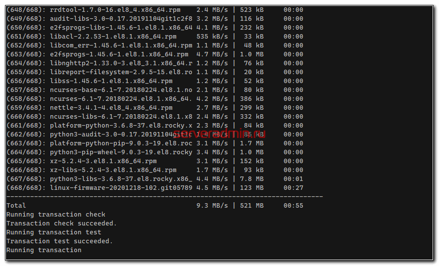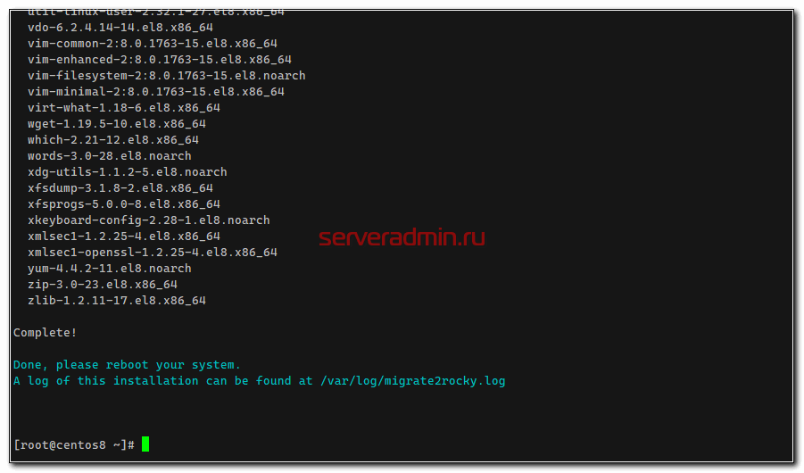 Будет собрана информация о текущих пакетах и репозиториях системы. Затем произойдет их замена на репозитории Rocky, а так же начнется обновление всех текущих пакетов из нового репозитория. Все будет сделано автоматически без дополнительных запросов!!!