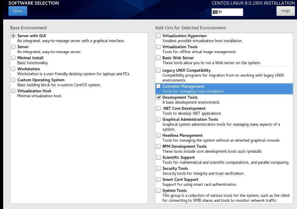 Выберите, хотите ли вы установить CentOS с графическим интерфейсом (GUI) или минимальную установку без графического интерфейса. Вы также можете дополнительно выбрать нужные компоненты