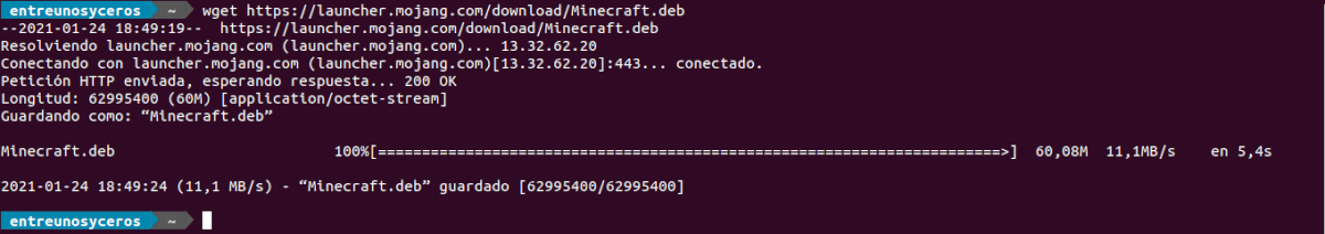 Если вы хотите использовать пакет .deb для установки Minecraft на Ubuntu 20.04, вам нужно открыть терминал (Ctrl + Alt + T) и запустите wget следующим образом Чтобы скачать его:
