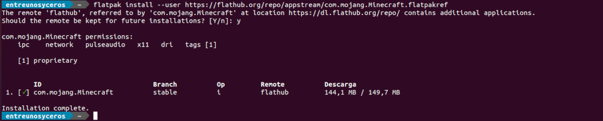 flatpak install --user https://flathub.org/repo/appstream/com.mojang.Minecraft.flatpakref