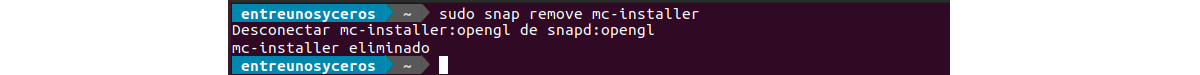 Если вы установили игру Minecraft с помощью диспетчера пакетов Snap, это можно удалить из системы, выполнив в терминале другую команду, показанную ниже (Ctrl + Alt + T):