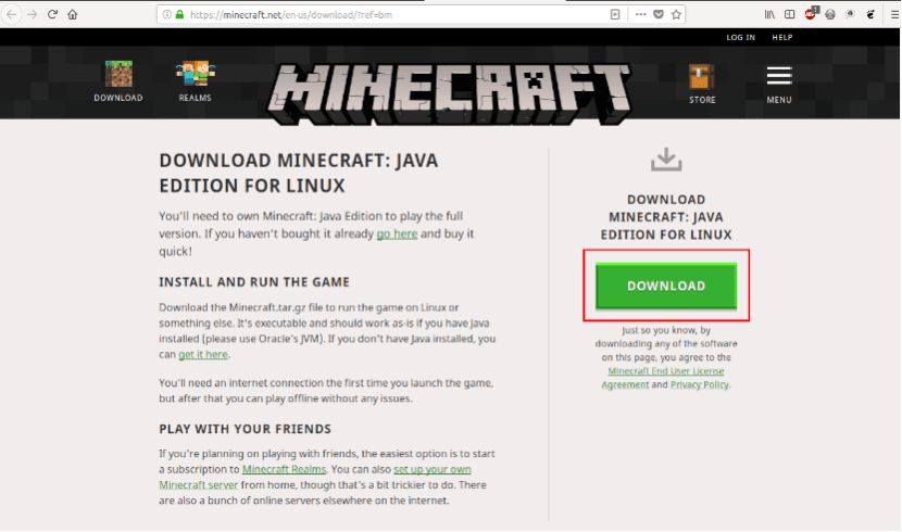 Currently, the official Minecraft Download page has three options for Desktop Linux