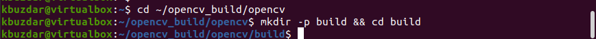 $ cd ~/opencv_build/opencv $ mkdir -p build && cd build