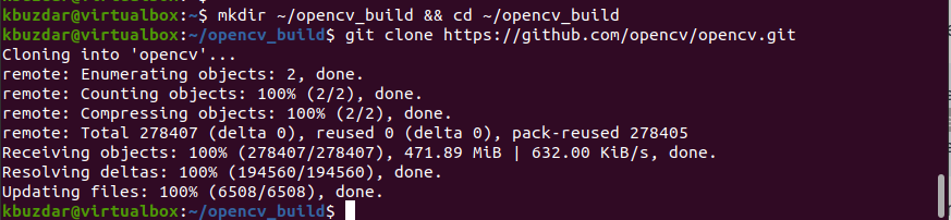 Make the directory and navigate in it. Clone the OpenCV repository by running the following command: